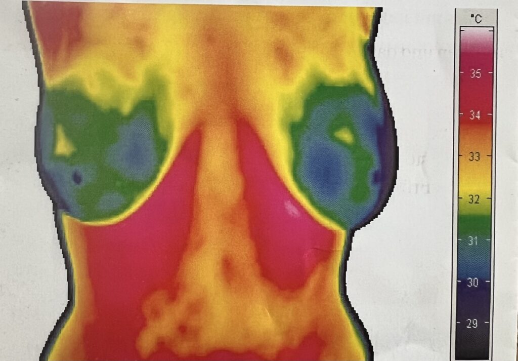 Die Thermographie ist ein bildgebendes Verfahren, das die Infrarot-Wärmestrahlung der Hautoberfläche misst. Da Tumore oft eine höhere Stoffwechselaktivität und Durchblutung aufweisen, können sie als wärmere Bereiche auf dem Thermogramm erscheinen.