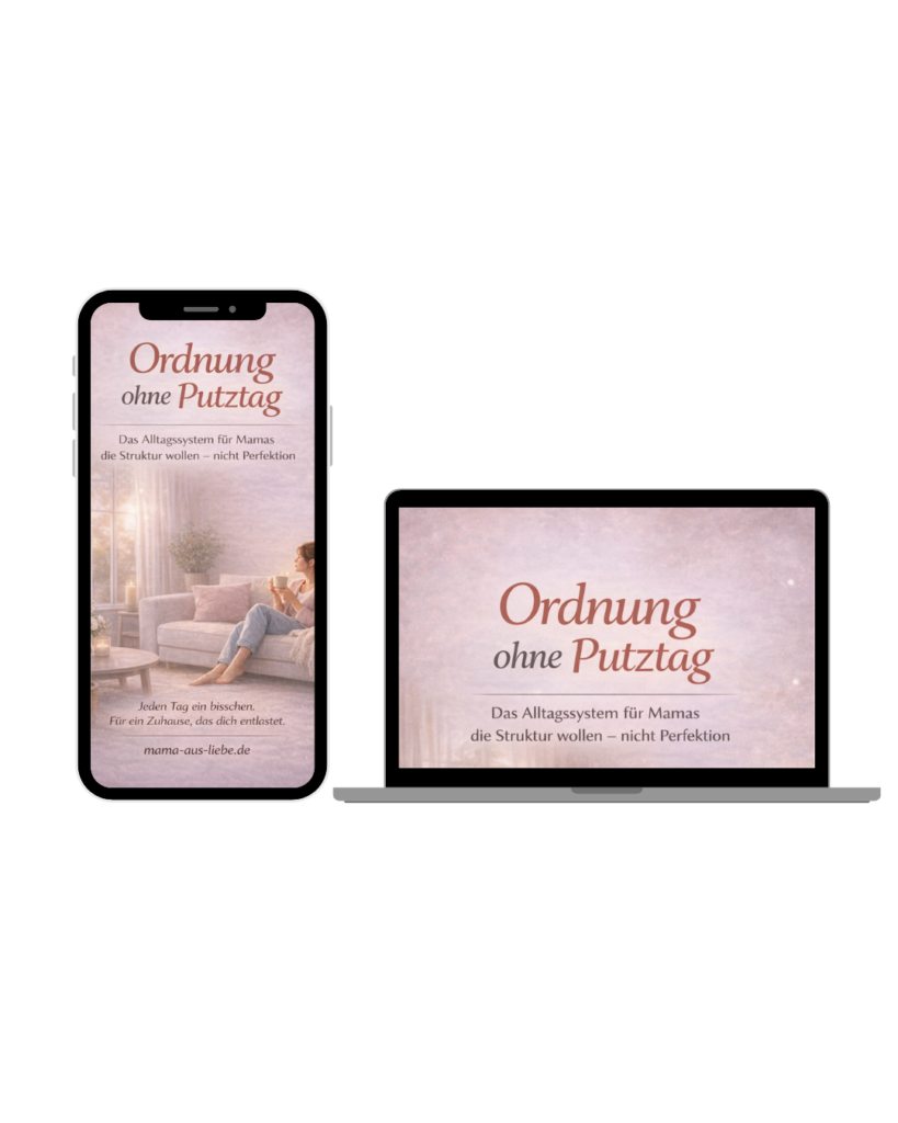 Genau aus diesem Gefühl heraus ist mein eBook entstanden. Ordnung ohne Putztag ist eine alltagstaugliche Anleitung für Mamas, die sich Struktur wünschen, ohne ihr Leben um den Haushalt zu bauen.